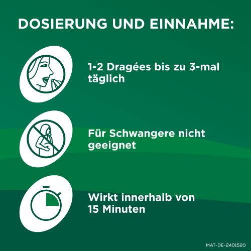 Kinder ab 6 Jahren und Erwachsene 1-2 Dragees 3-mal täglich morgens, mittags, abends, unabhängig von der Mahlzeit