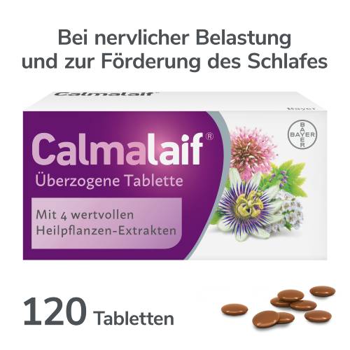 Calmalaif® hilft auf natürliche Weise, innere Ruhe und einen erholsamen Schlaf zurückzugewinnen, um stressige Phasen mit mehr Leichtigkeit zu meistern. Die einzigartige Kombination aus 4 pflanzlichen Inhaltsstoffen lindert umfassend typische Stressbeschwerden wie innere Unruhe, Anspannung und Schlafprobleme und unterstützt so die körpereigene Regeneration. Dabei ist Calmalaif® gut verträglich und macht weder abhängig noch tagsüber müde.