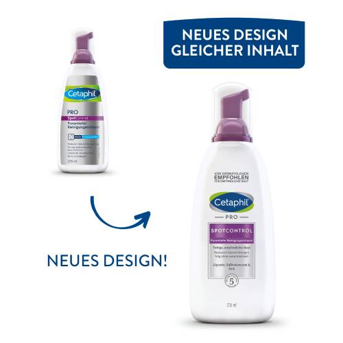 Der erfrischende Cetaphil PRO SpotControl Reinigungsschaum befreit die Haut effektiv von überschüssigem Talg und Schmutzpartikeln. Die seifenfreie Formulierung reinigt porentief ohne auszutrocknen und schont die natürliche Hautbarriere. Für ein klares und gepflegtes Hautbild. Der Schaum ist auch zur begleitenden Reinigung während der Akne-Therapie geeignet. Dermatologische und hautphysiologische Untersuchungen bestätigen die effektive Reinigungswirkung und sehr gute Verträglichkeit bei zu Akne und Unreinheiten neigender Haut. Nicht komedogen.