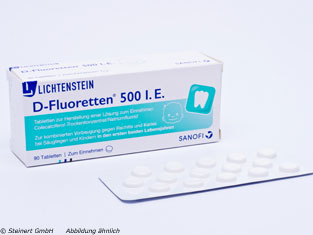 Berücksichtigen Sie bitte die zusätzliche Fluoridzufuhr aus Lebensmitteln, Getränken und Arzneimitteln bei der Dosierung. Informieren Sie sich hierzu bei Ihrem Arzt oder Apotheker.