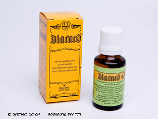 Die Diacard Liquidum Tropfen werden zur Linderung von funktionellen Herzbeschwerden bei einer allgemeinen vegetativen Labilität angewendet. Die Tropfen enthalten eine Kombination der Wirkstoffe Königin der Nacht, Weißdorn, Campher, Aether sulfuricus und Baldrian, jeweils in einer homöopathischen Verdünnung. Sowohl Königin der Nacht als auch Weißdorn sind in der Lage die Herzleistung zu verbessern, Campher und Aether verfügen über kreislaufanregende Eigenschaften und beim Baldrian handelt es sich um eine ausgleichende Komponente bei nervös bedingten Störungen. Die Diacard Liquidum Tropfen können das Herz bei funktionellen Beschwerden, welche durch vegetative Schwankungen bedingt sind, unterstützen.