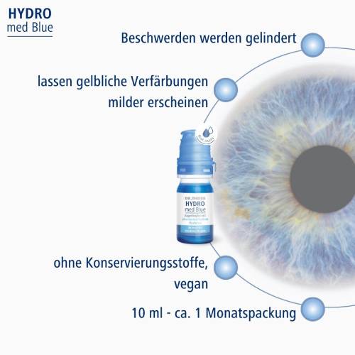 Dr. Theiss HYDRO med Blue Augentropfen zur verbesserten Befeuchtung und Pflege trockener Augen und zur sofortigen Linderung der Symptome des Dry Eye Syndroms (brennende, rote, juckende, gereizte und tränende Augen). Intensiviert so das Augenweiss.