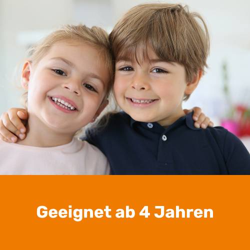 Kinder ab 4 Jahren lassen täglich eine Tablette nach einer Mahlzeit im Mund zergehen.