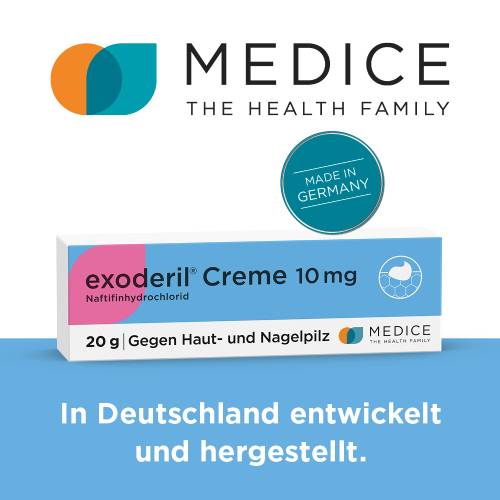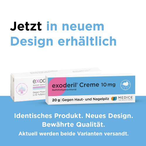 Exoderil besitzt mit Naftifin einen einzigartigen Wirksoff, der fungizid (pilzabtötend) gegenüber Dermatophyten und Schimmelpilzen wirkt und dennoch ausgezeichnet verträglich ist