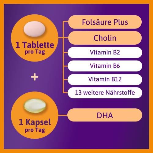- ZUGESCHNITTENE NÄHRSTOFFKOMBINATION: 400 µg Folat, Tablette enthält Omega 3 DHA, Cholin, Metafolin®, Folsäure, Jod, B-Vitamine, Vitamin D, Vitamin E, Zink, Biotin, Niacin, Pantothensäure und Selen