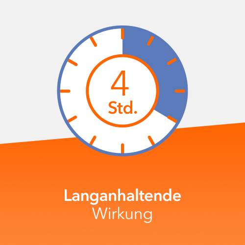 • Eine erste Wirkung tritt bereits nach 15 Minuten ein und hält bis zu 4 Stunden an