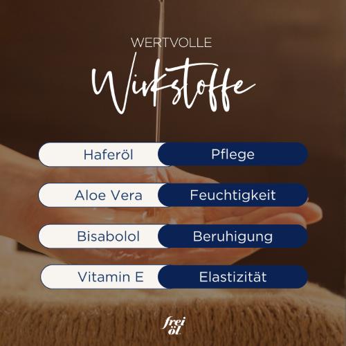 • Bewahrt Feuchtigkeit mit Aloe vera und Weizenkeimöl