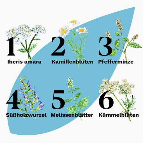 - einzigartige Kombination aus 6 Heilpflanzen mit hohem Anteil an beruhigenden, entzündungshemmenden und schleimhautschützenden Extrakten