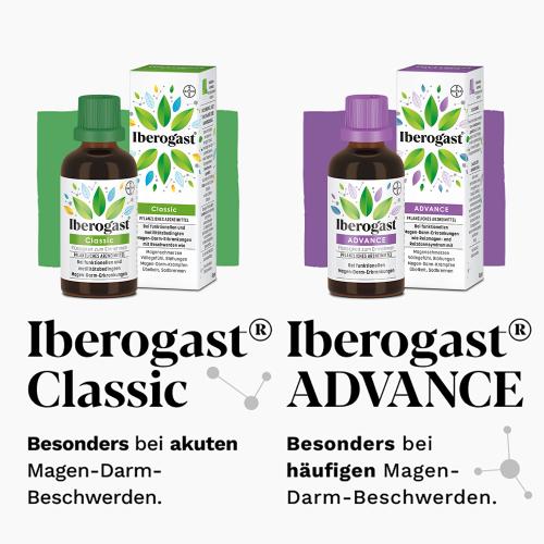 Iberogast® ADVANCE. Pflanzliches Arzneimittel bei Magen-Darm-Erkrankungen. Behandlung von funktionellen Magen-Darm-Erkrankungen wie Reizmagensyndrom (funktionelle Dyspepsie) und Reizdarmsyndrom (Colon irritabile). Das Arzneimittel enthält 31 Vol.-% Alkohol. Stand: 12/2020. Bayer Vital GmbH, Kaiser-Wilhelm-Allee 70, 51373 Leverkusen, Deutschland.