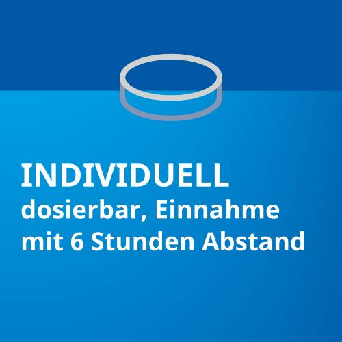 1 Tablette 1-3 mal täglich im Abstand von 6 Stunden, unabhängig von der Mahlzeit
