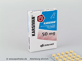 Die Karsivan 50 vet. Filmtabletten werden zur Behandlung von Durchblutungsstörungen speziell bei älteren Hunden angewendet. Die Filmtabletten enthalten den Wirkstoff Propentofyllin. Der Wirkstoff ist in der Lage die Durchblutung in den peripheren und zerebralen Geweben zu verbessern, wodurch es zu einer Begünstigung der Fließeigenschaften des Blutes kommt. Die Sauerstoffversorgung im Gehirn, in den Muskeln  und in anderen wichtigen Organen wird deutlich verbessert. Die Karsivan 50 vet. Filmtabletten können sowohl die Vitalität, als auch Lebensqualität spürbar fördern.