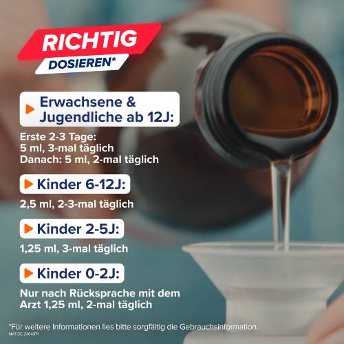 Jugendliche ab 12 Jahren und Erwachsene 5 ml 3-mal täglich zu oder unabhängig von den Mahlzeiten