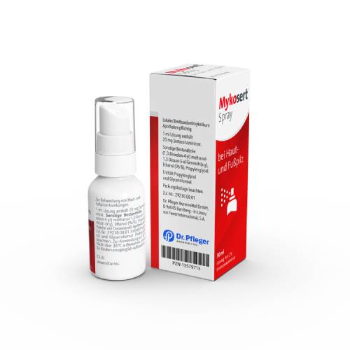 Im Rahmen einer Nagelpilz-Therapie mit einem geeigneten Arzneimittel sollte eine oft gleichzeitig auftretende Infektion der Haut immer mitbehandelt werden. Mykosert® Spray ist daher auch eine gute Zusatzempfehlung zur Behandlung von Fußpilz bei Patienten mit Nagelpilz.