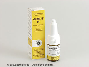 Die Notakehl D5 Tropfen werden zur homöopathischen Behandlung von lokalen Infektionen angewendet. Die Tropfen enthalten einen Extrakt aus dem Pilz Penicillum notatum. Dieser Pilz beinhaltet weder Penicillinsäure noch ein Antibiotikum. Der Pilzextrakt sorgt für eine Unterstützung des Immunsystems und für eine Stärkung der Abwehrkräfte. Es kommt zu einer Verbesserung der Vitalität und des Wohlbefindens. Die Notakehl D5 Tropfen helfen bei Mandel- und Ohrentzündungen und bekämpfen die Entzündung.