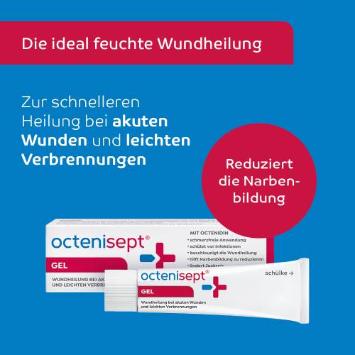 octenisept® Gel unterstützt den Heilungsprozess von akuten Hautwunden, die rasch beim Sport, im Alltag oder in der Freizeit entstehen können. Nach der Reinigung und Desinfektion von leichten Schnitt- und Schürfwunden schafft octenisept® Gel ein feuchtes Milieu und hält die Wunde durch eine schützende Schicht keimfrei. Das Gel kühlt betroffene Stellen und brennt nicht. Angewendet werden kann es sowohl bei Erwachsenen als auch bei Kindern.