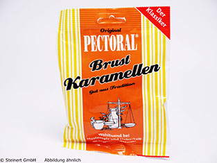 Original PECTORAL® Brust-Karamellen klassisch basieren auf der bewährten PECTORAL® Rezeptur mit Süßholzsaft und werden seit Jahrzehnten nach traditioneller Rezeptur zubereitet. Für diese Rezeptur werden nur besonders ausgewählte, hochwertige Ingredienzien verwendet. Das enthaltene Süßholz ist gerade bei Hustenreiz besonders wohltuend und lösend. Extratipp: Gießen Sie 2-3 Original PECTORAL® Brust-Karamellen klassisch in heißem Wasser auf und genießen Sie sie als Tee.
