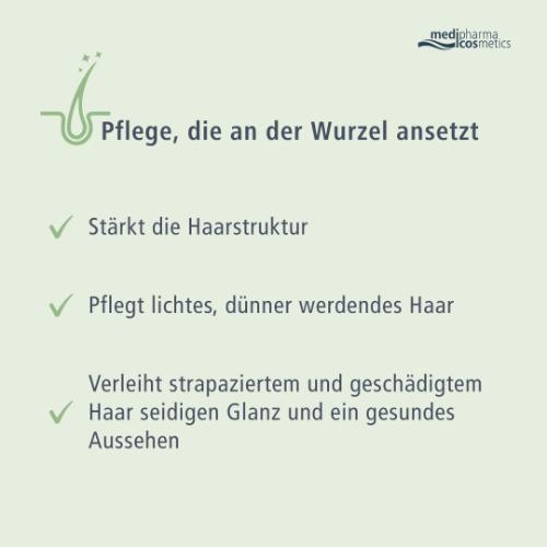 Für eine abgestimmte Pflege empfiehlt sich ergänzend das Phyto Hair Booster Tonikum von medipharma cosmetics. Nach der Haarwäsche direkt auf die Kopfhaut aufgetragen und nicht ausgespült, kann es die Haarwurzel gezielt stärken und das Haarwachstum zusätzlich unterstützen – ohne zu beschweren.
