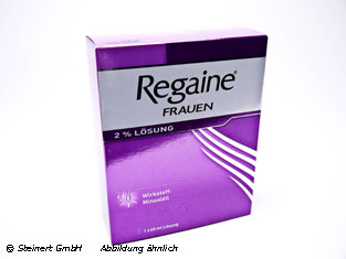 Wirkstoff: Minoxidil. Anwendungsgebiet: Regaine Frauen stabilisiert bei Frauen den Verlauf der androgenetischen Alopezie vom weibl. Typ (charakteristische anlagebedingte diffuse Kopfhaarverdünnung im Scheitelbereich). Die Behandlung mit Regaine Frauen fördert das Haarwachstum und kann so dem Fortschreiten dieses Haarverlustes entgegenwirken. Warnhinweis: Enth. Propylenglycol.