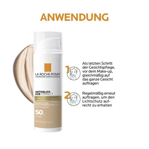 La Roche Posay Anthelios Age Correct LSF 50+: Feuchtigkeitsspendende, getönte Tagescreme mit Lichtschutz zur Vorbeugung lichtbedingter Hautalterung