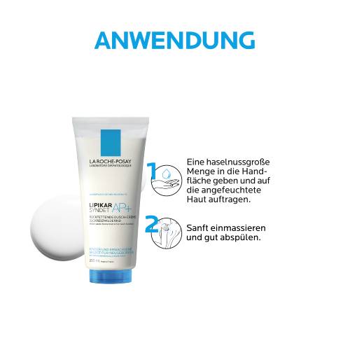 Die LIPIKAR Syndet AP+ Dusch-Creme von La Roche-Posay ist eine Körperreinigung ohne Duftstoffe. Das sanft reinigende Cremegel eignet sich als Basispflege zum Duschen bei zu Neurodermitis neigender, empfindlicher und sehr trockener Haut. Durch die rückfettende Eigenschaft wirkt die LIPIKAR Syndet AP+ Dusch-Creme hautberuhigend und juckreizlindernd. Es ist für Säuglinge, Kinder und Erwachsene geeignet. Angereichert mit Niacinamid und dem Wirkstoff Aqua Posae Filiformis lindert LIPIKAR Syndet AP+ den Juckreiz bereits unter der Dusche. Die in der Formulierung enthaltene Sheabutter pflegt empfindliche Haut zusätzlich.