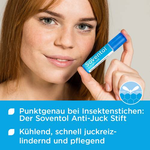 Bei Mückenstichen hat sich der Soventol® Anti-Juck Stift hervorragend bewährt: Er kühlt wunderbar und pflegt sanft.