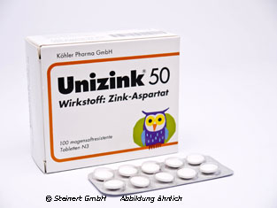 Die Unizink 50 Tabletten werden zur Behandlung und Vorbeugung eines Zinkmangels angewendet. Die Tabletten enthalten eine Kombination aus Zink und der koerpereigenen Aminosaeure Asaraginsaeure. Diese Kombination kann vom Koerper besonders gut aufgenommen und verwertet werden. Beim Zink handelt es sich um einen wichtigen Mineralstoff fuer den Stoffwechsel von Haut, Haaren und  Naegeln. Der Wirkstoff unterstuetzt sowohl das Wachstum, als auch die Zellerneuerung.  Durch die Unizink 50 Tabletten werden zusaetzlich die Abwehrkraefte im Koerper aktiviert, wodurch Viren, Bakterien und freie Radikale unschaedlich gemacht werden.