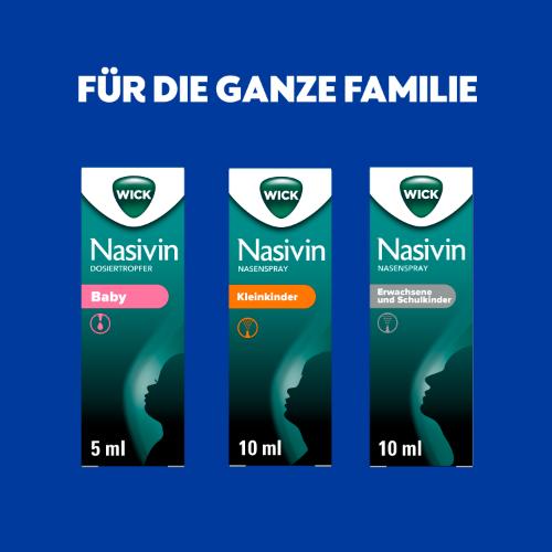 - WICK Nasivin Nasenspray o. K. Erwachsene und Schulkinder verkürzt die Dauer des Schnupfens um bis zu 2 Tage.